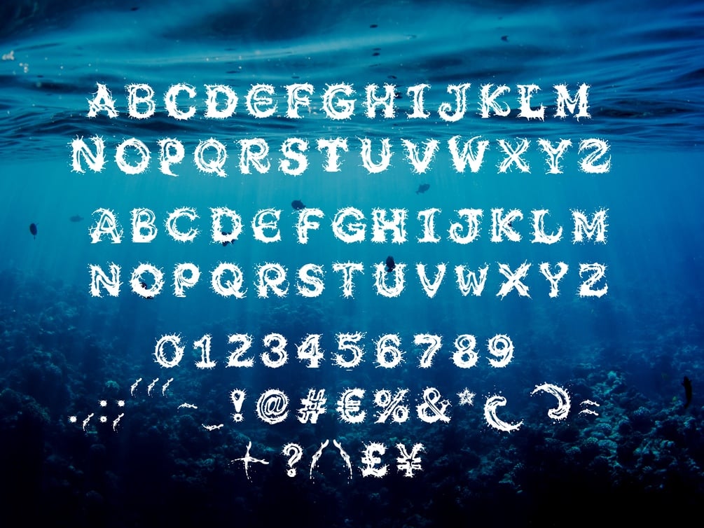 A decorative font inspired by waves and the ocean, however works as a bloody/splatter font as well.
