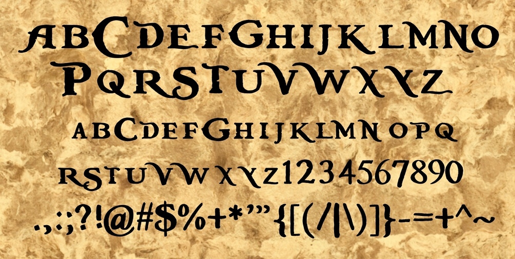 A decorative font, based on the logo of “Pirates of the Caribbean”. Upon download you get a zip folder including